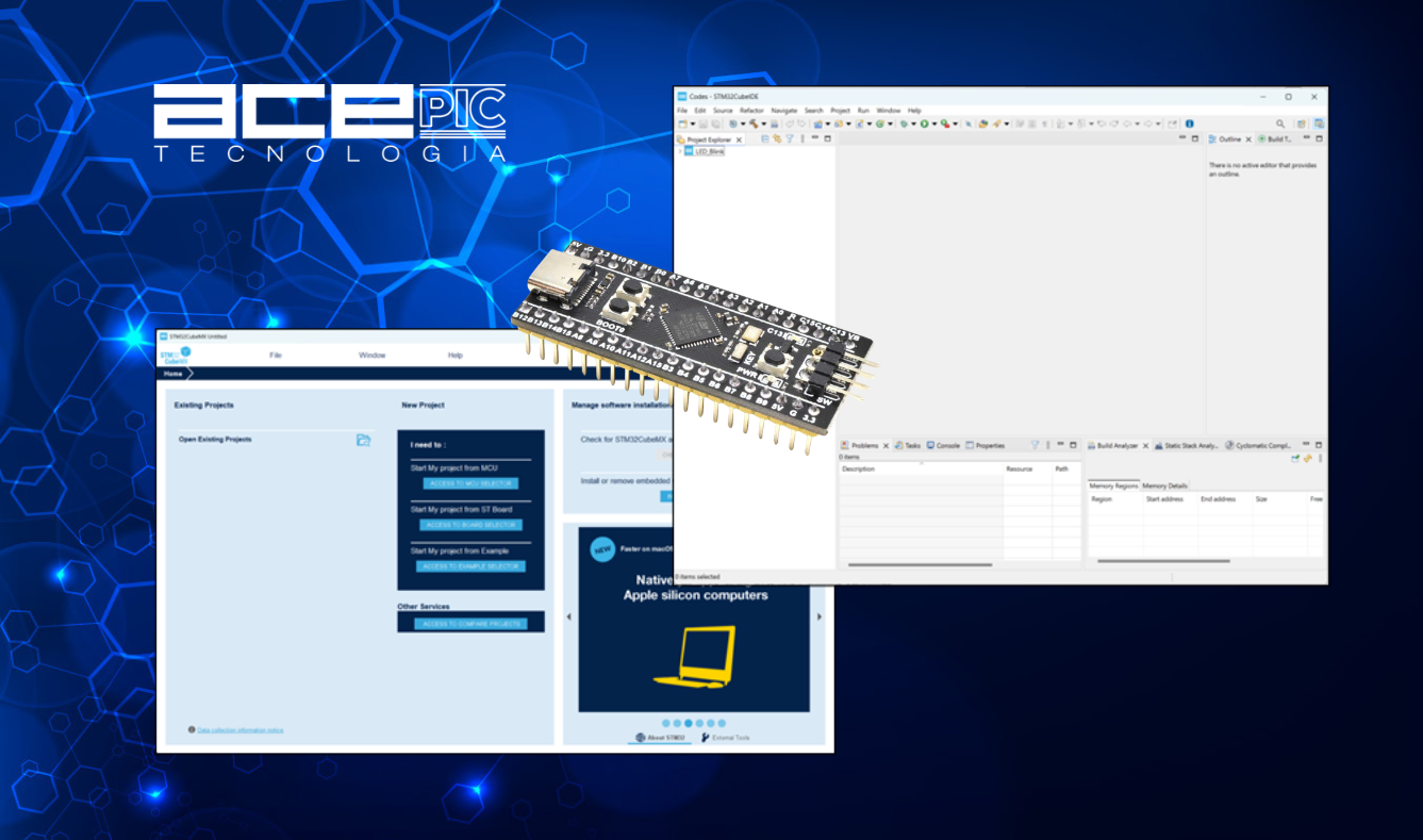 O STM32CubeMX é disponibilizado gratuitamente pela STMicroelectronics para os principais sistemas operacionais, como Windows, Linux e macOS. Após